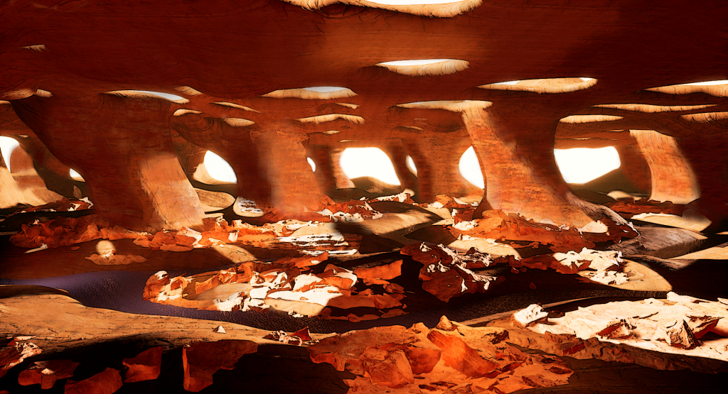 Der gesamte Mond ist von einer riesigen orangenen Wüste bedeckt. 40% des Mondes sind dabei von einem tiefen Meer bedeckt. Ursprünglich war der Mond in seiner Frühzeit zu 80% von Wasser bedeckt. Durch den Einschlag eines Asteroiden und die darauf folgende Reaktion der Plattentektonik, versiegte ein Großteil des Meerwassers allerdings im Untergrund. Dadurch wurden zahlreiche Unterseehöhlen freigelegt, welche auch heute noch immense Ausmaße annehmen.