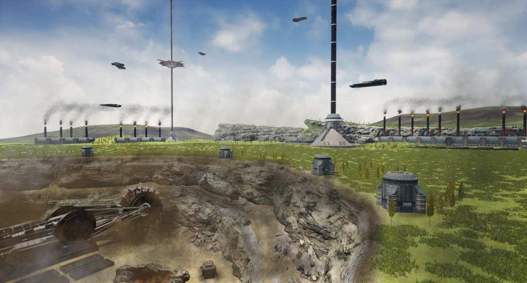 Normandy wurde dadurch zum Hauptexporteur für Eisen und andere Metalle, welche vorwiegend für den Bau von Raumschiffen verwendet werden. Um einen einfacheren und schnelleren Abtransport zu gewährleisten, wurden über der Oberfläche des Planeten verteilt mehrere Weltraumlifts erbaut. Diese legten einen weiteren Meilenstein der Ingenieurskunst und waren die Vorreiter für den Ring von Poseidon im Elysium-System. Unter diesen Weltraumlifts befinden sich auch mehrere Raumschiffwerften, die mit keinem hohen Transportaufwand an ihr Baumaterial gelangen.