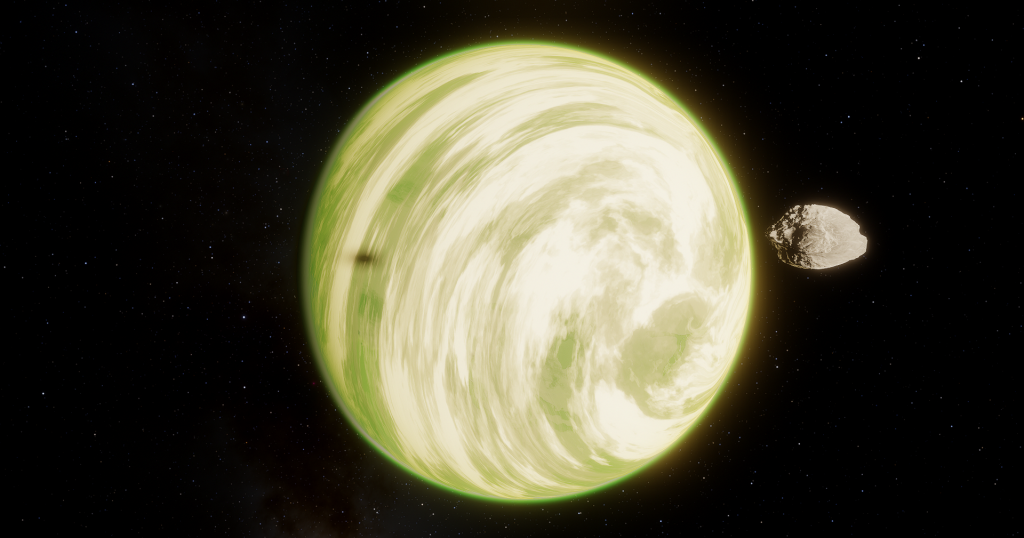 Im Zenit zum Äquator des Planeten bedeckt ein Hurrikan konstant einen Achtel der Oberfläche. Dieser verteilt die heißen Winde über den gesamten Planeten.