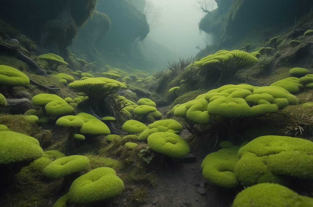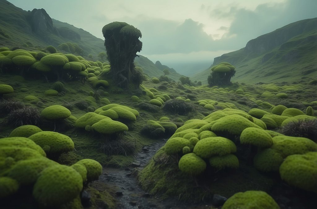 Monoflora durch Farn, Flechten und Moos.
